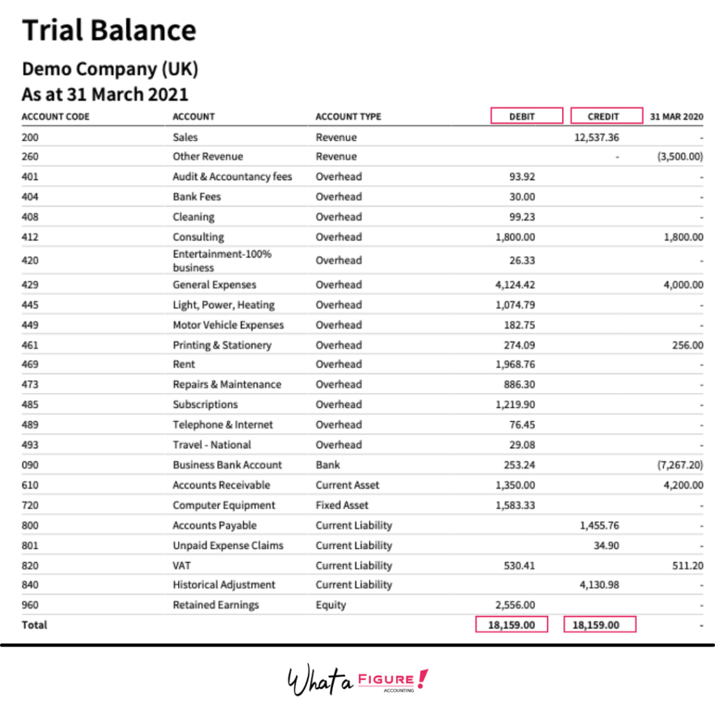 This is an example of a trial balance in Xero: