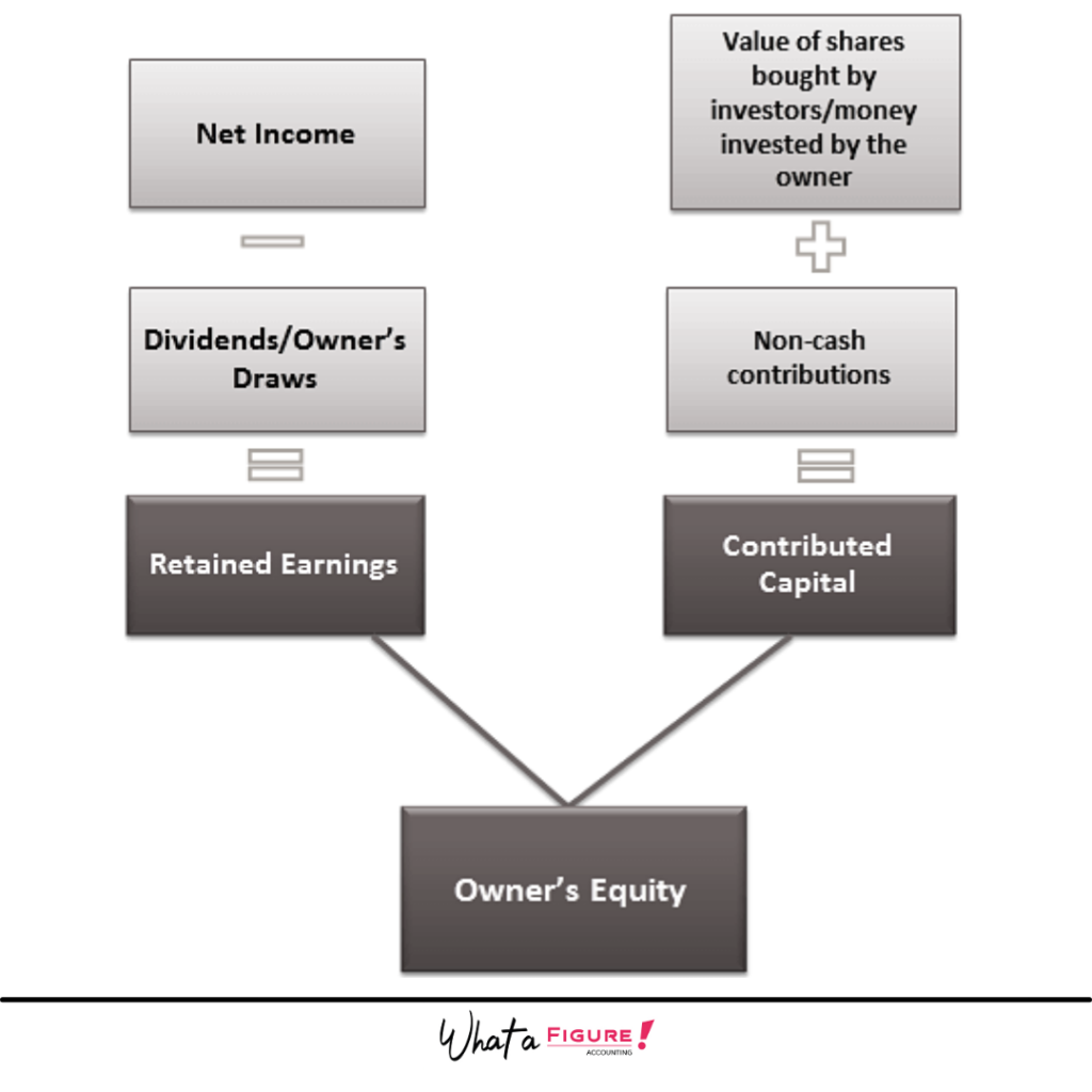 As you’ve seen in the picture in the beginning, the sum of retained earnings and contributed capital equal owner’s equity.